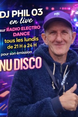 EMISSION NU DISCO DU LUNDI DE 21 H A 24 H Slt a tous je me présente dj phil 03 dans l allier prestataire de service théoricien laser et animateur sur plusieurs radio de France aux Canada directeur de mes radio web qui et discoviva 6 radio à mon effectif je suis chez suis tout les lundi pour mon live nu disco house mix 21h a 0h et tout les vendredi de 21h à 0h pour 100 % mix new electro